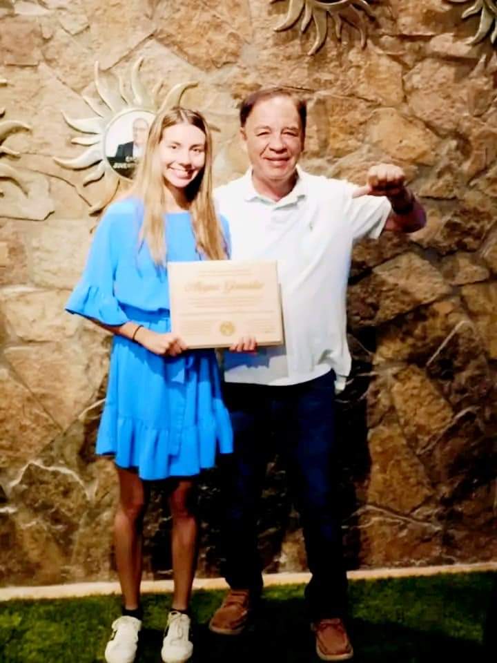 Los regidores de la fracción Priísta entregamos un reconocimiento a la Gigante de Ojinaga Alegna Gonzales, a la quinta mejor del Mundo . Gracias Alegna por poner en alto el nombre de México, Chihuahua y Ojinaga en el Mundo. Al ver tu cara a mi mente se vino la imagen de su carita de niña, cuando la miraba hacer caminata en la deportiva desde los 5 años y con el tiempo decía que un día iba ser una gran Atleta y no me equivoqué. Dios la cuide siempre y la bendiga y como le dije hoy soy su Fan.