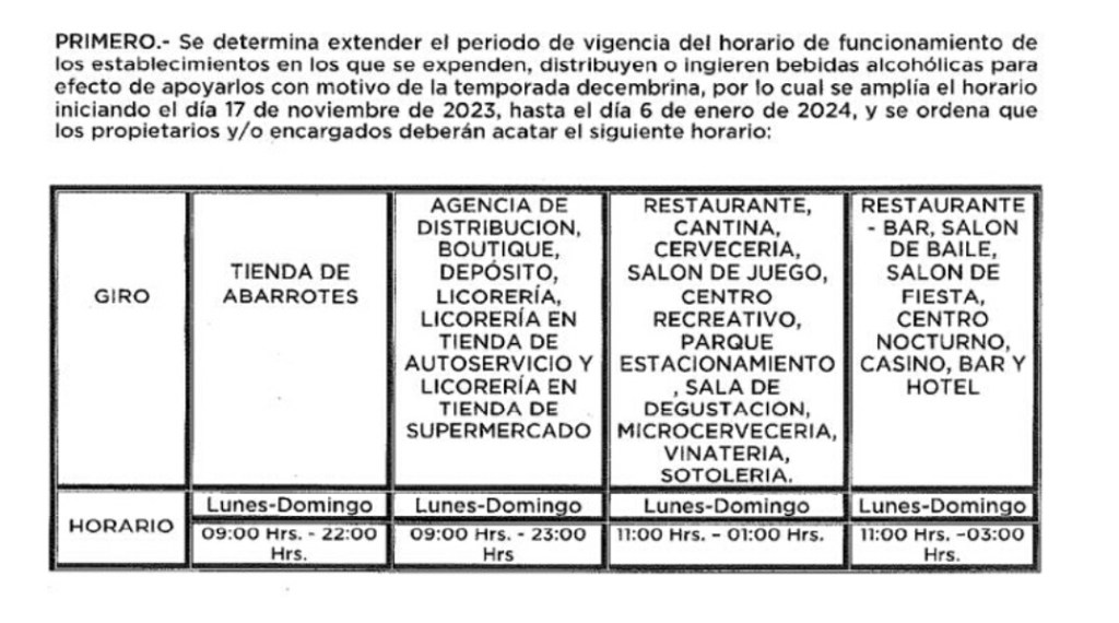 El Gobierno del Estado emitió el decreto para ampliar los horarios de venta de alcohol a partir del viernes 17 de noviembre, para el periodo Buen Fin – Día de Reyes.