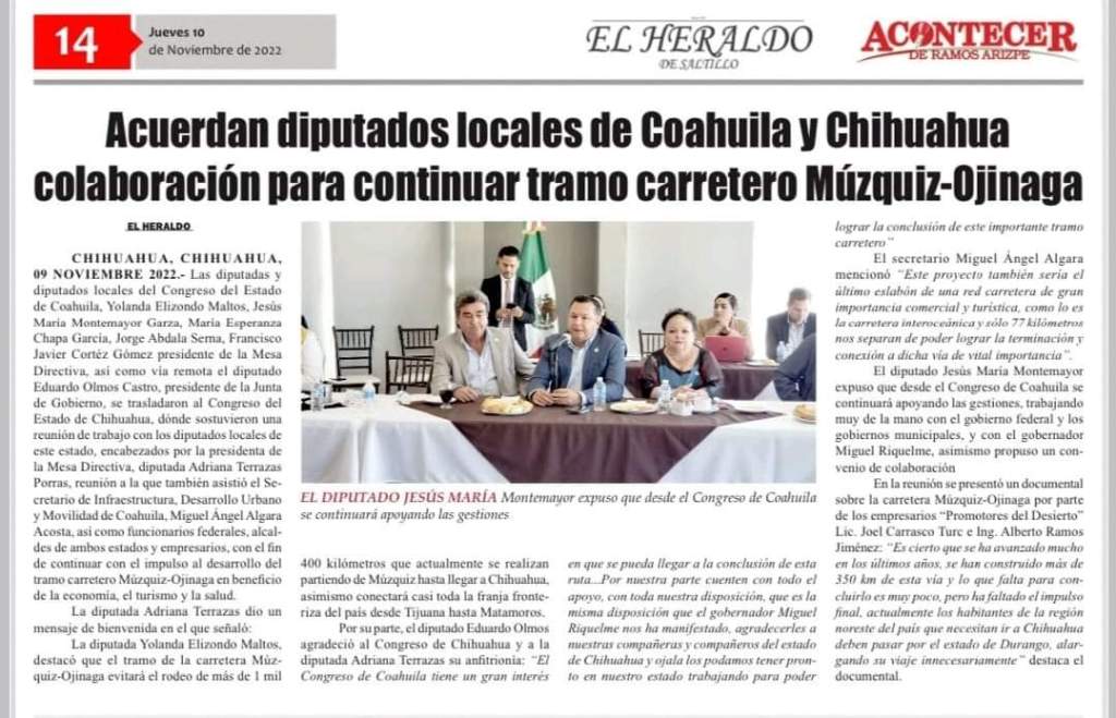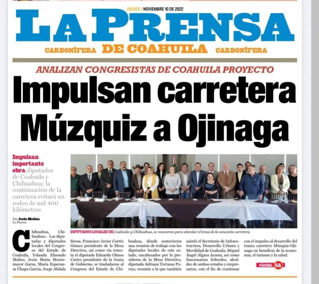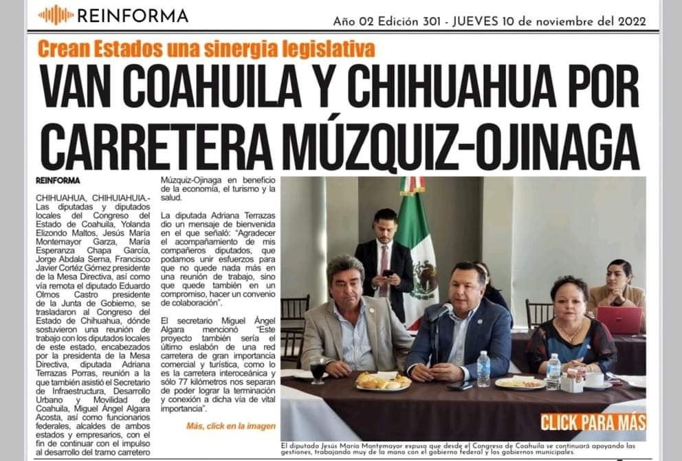 CHIHUAHUA Y COAHUILA ACUERDAN TERMINAR LA CARRETERA MUZQUIZ-OJINAGA.