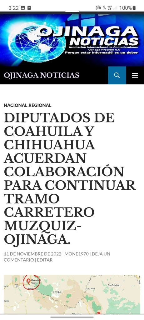 PRESIDENCIA MUNICIPAL DE MANUEL BENAVIDES INFORMA El día miércoles 9 de noviembre fue un día muy importante para el municipio de Manuel Benavides por qué se dio un acercamiento con una mesa de trabajo de parte de grupo parlamentario de Coahuila y de Chihuahua,la cual también asistieron empresarios de Muzquiz para intercambiar ideas y yegar ala misma conclusión de que la carretera Muzquiz -Ojinaga debe ser una realidad,quizá para muchos solo sea un acercamiento pero convencidos estamos que todos los integrantes de la mesa de trabajo tenemos el compromiso de aser lo que quede de nuestra parte y que esté sueño yegue aserse una realidad y para nosotros es una satisfacción el ser parte de ello. Desirles que no dejaremos de insistir y expresar las nesecidades de nuestro pueblo y esa es una de ellas. Con Voluntad y Compromiso