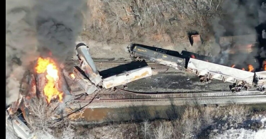 El feroz descarrilamiento del 3 de febrero en Ohio provocó evacuaciones cuando se quemaron productos químicos tóxicos después de ser liberados de cinco vagones cisterna descarrilados que transportaban cloruro de vinilo que estaban en peligro de explotar.