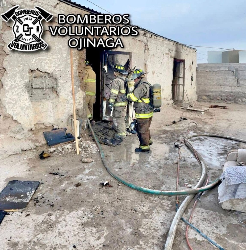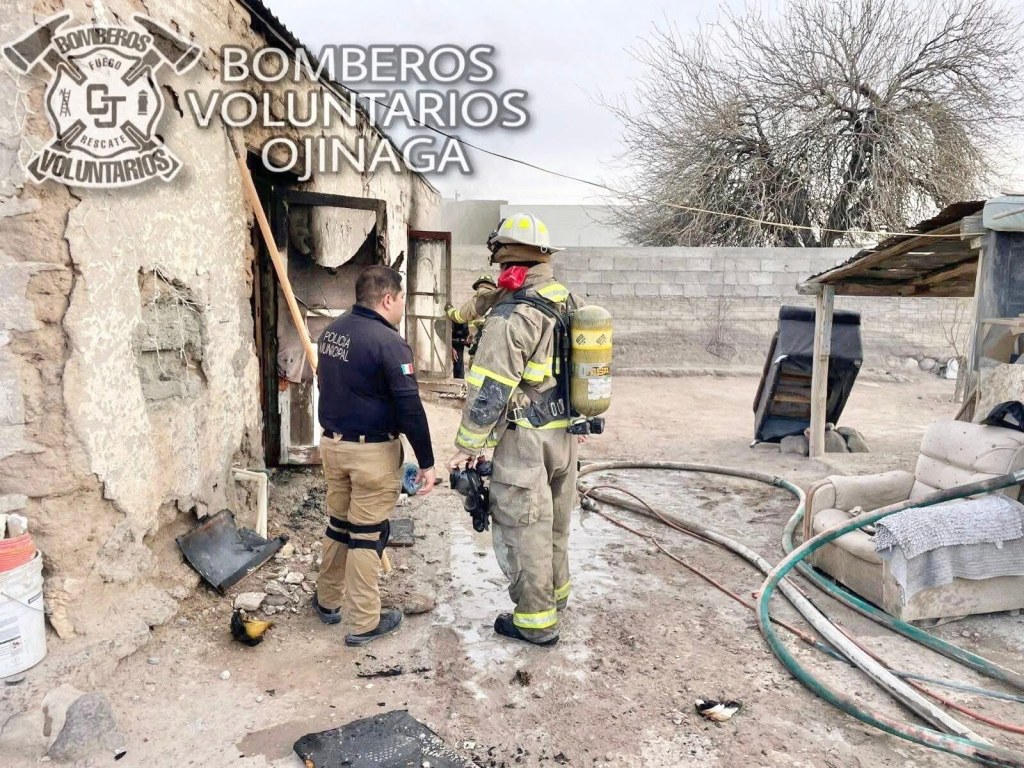 Cd. Ojinaga, Chih.- Elementos de Bomberos Voluntarios atendieron un incendio en una casa habitación, en la calle Juárez, donde una habitación resultó con daños totales.