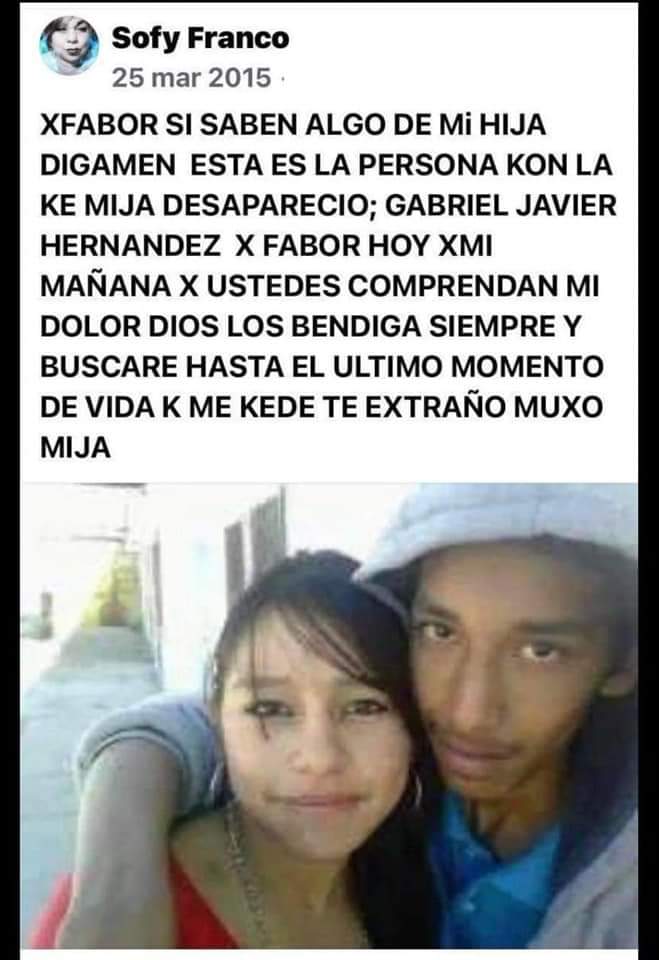«Les agradecería de todo corazón que compartan, que si alguien la a visto por fabor comunicarse conmigo soy su madre la extraño demasiado, toda su familia».