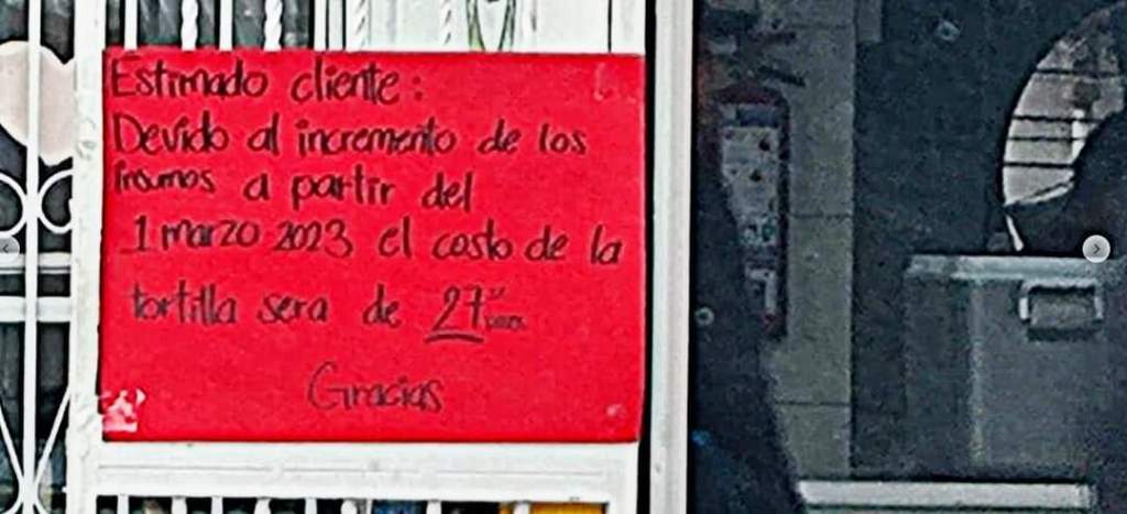 Desde inicio de semana en algunos expendios de tortillas se dio a conocer el incremento del precio de este importante producto, a través de cartulinas indicaban que “por incremento en los precios de los insumos” el precio de la tortilla subirá de $25.00 a $27.00 pesos a partir del próximo 01 de marzo.