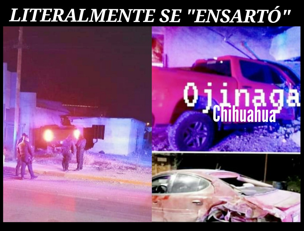 OJINAGA._Anoche se registró un choque entre dos vehículos en la interseccion del Blvd. Libre comercio y Manuel Ojinaga en donde uno de los involucrados salió proyectado contra un local en construcción.