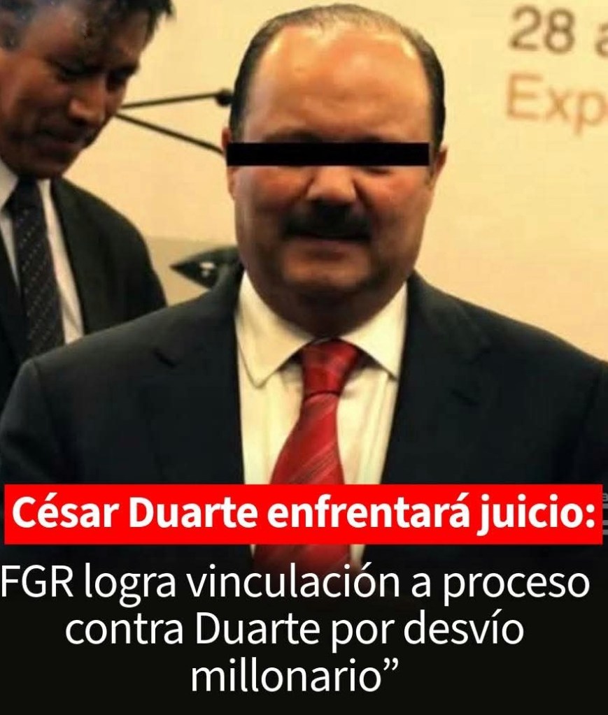 Una jueza federal vinculó a proceso al exgobernador de Chihuahua, César Duarte, por el delito de lavado de dinero, tras considerar que la FGR presentó pruebas suficientes.