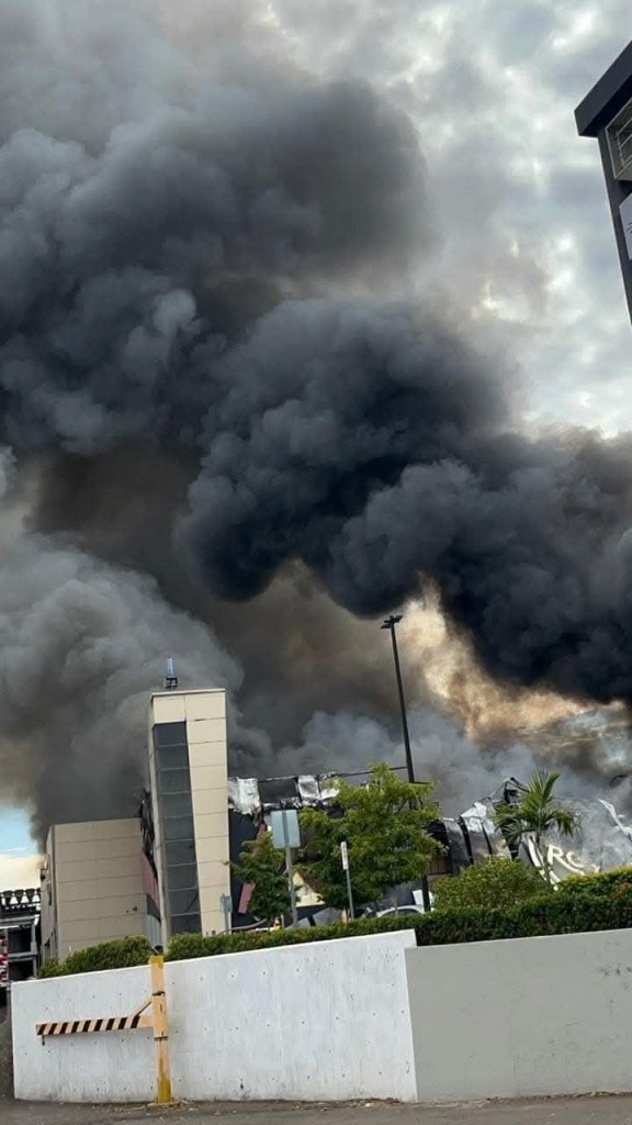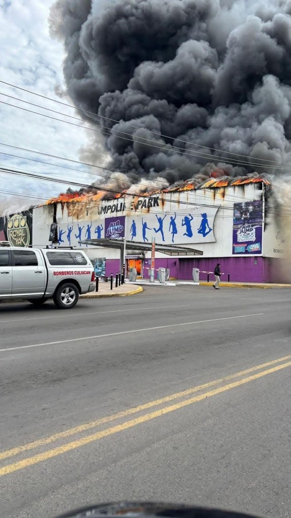 Tras el colosal incendio de esta tarde en el casino Air Jump Trampoline Park en Culiacán, Sinaloa, este quedó completamente carbonizado.