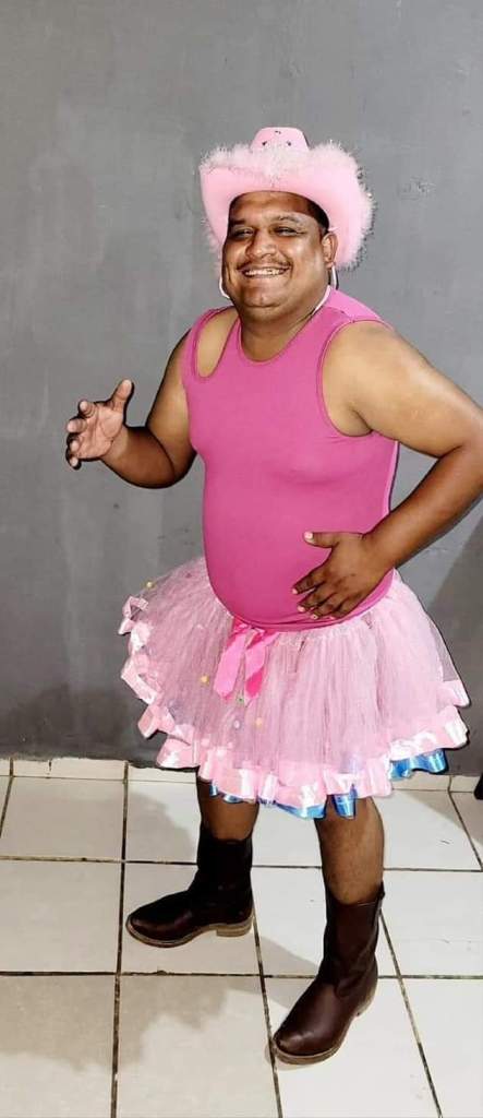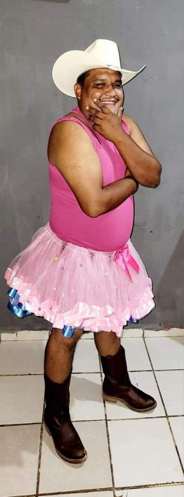 Portando blusa rosa, tutú, botas y sombrero vaquero, el hombre fue captado por cientos de curiosos, pues no pasó desapercibido con su atuendo.