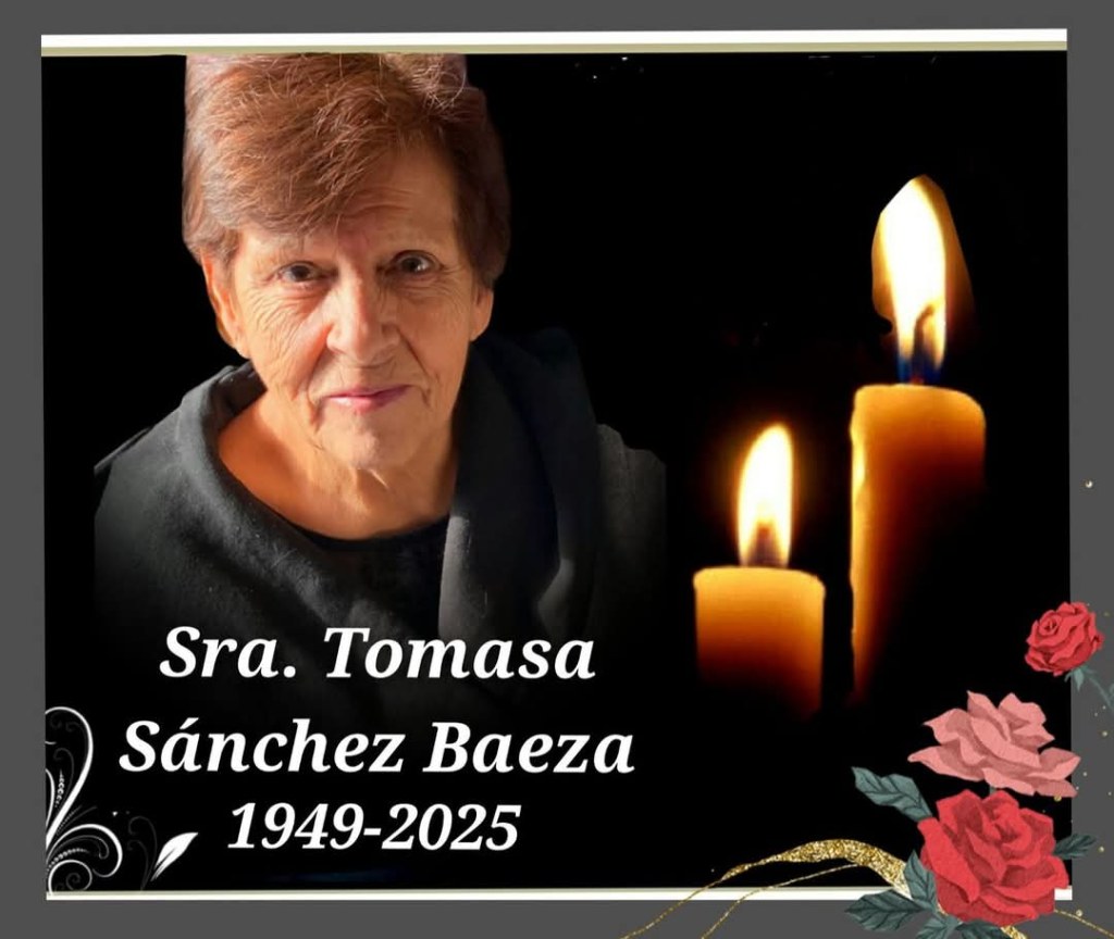 Con Profundo Pesar y Tristeza Participamos el Sensible Fallecimiento de la Sra. Tomasa Sánchez Baeza el día de hoy a la Edad de 75 Años. Después se Informará día y Hora de los Servicios Funerarios. Condolencias Para su Familia y Amistades.