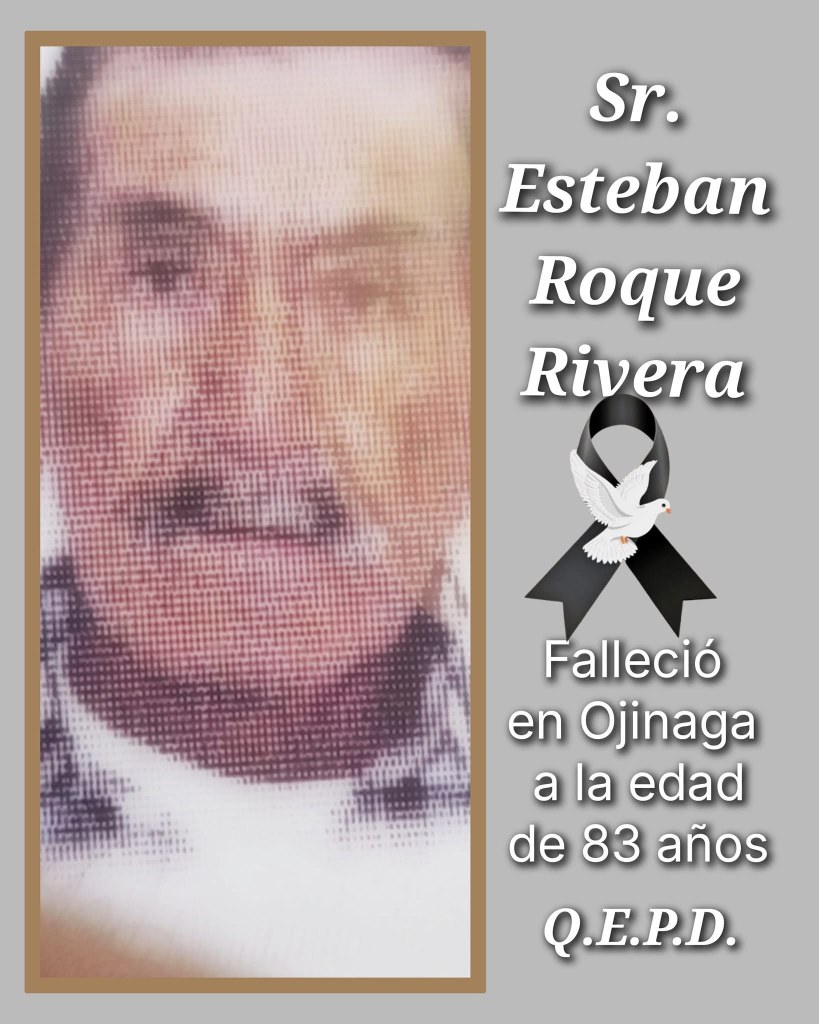 𝙊𝘽𝙄𝙏𝙐𝘼𝙍𝙄𝙊 Con Profunda Pena y Dolor Participamos el Sensible Fallecimiento del Sr. Esteban Roque Rivera el día de hoy en Ojinaga a la Edad de 83 Años. Es Velado en la Capilla del DIF Municipal El Último Adiós; Los Servicios Funerarios Serán Este Jueves a las 6 de la Tarde.