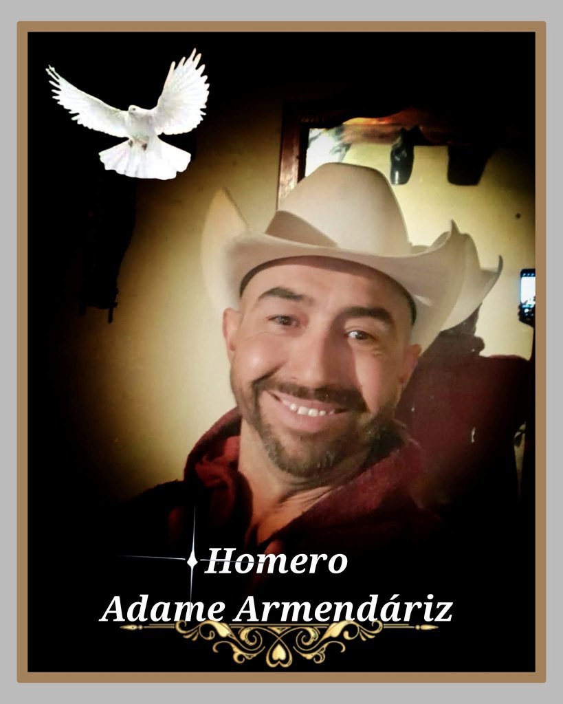 𝙊𝘽𝙄𝙏𝙐𝘼𝙍𝙄𝙊 A familiares y amistades de señor Homero Adame Armendáriz se les comunica su sensible fallecimiento en ojinaga a la edad de 46 años, es velado en funeraria De Valle 1; Los servicios funerarios serán este domingo 12 de octubre con misa de cuerpo presente a las 8 de la mañana en el santuario de Guadalupe/ sepelio panteón del colinas del edén.