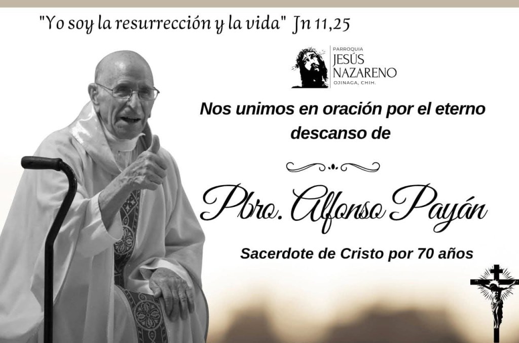 Como comunidad parroquial nos unimos en oración por el eterno descanso del presbítero Alfonso Payán, quién fuera durante varios años párroco de Ojinaga.