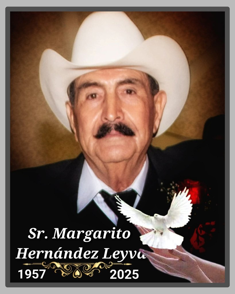 🖤𝙊𝘽𝙄𝙏𝙐𝘼𝙍𝙄𝙊 A familiares y amistades del Sr. Margarito Hernández Leyva, se les comunica su sensible fallecimiento a la edad de 67 años en Monterrey N.L. Será trasladado a Ojinaga para ser velado este sábado en funeraria De Valle 1 a partir de las 9 de la mañana. Los servicios funerarios serán el domingo con misa de cuerpo presente a las 04:30 pm. en el santuario de Guadalupe, de ahí se partirá al panteón Colinas del Edén.