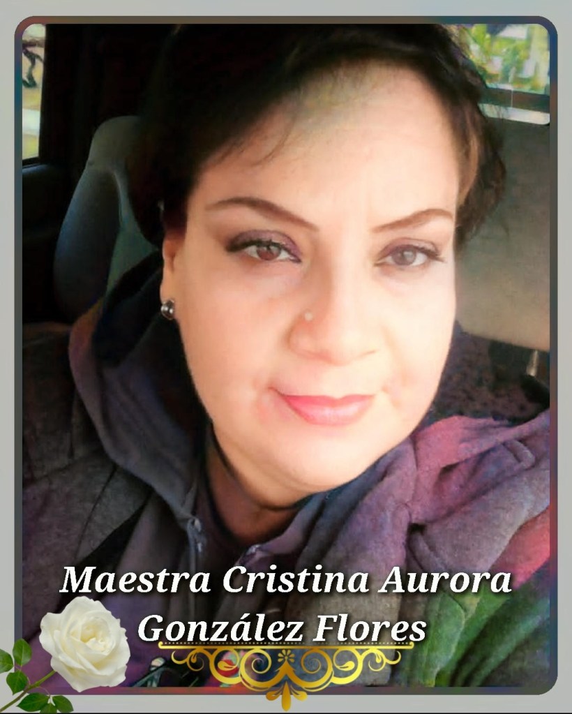 La Maestra Cristina estaba en activo e impartía clases en la escuela primaria Francisco Villa del sistema estatal, es hija del ex presidente municipal Ing. Armando González Blanco administración (1984-1986). DESCANSE EN PAZ Y CONDOLENCIAS A TODA SU FAMILIA Y AMIGOS, ASI COMO AL MAGITERIO ESTATAL.