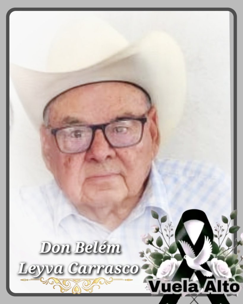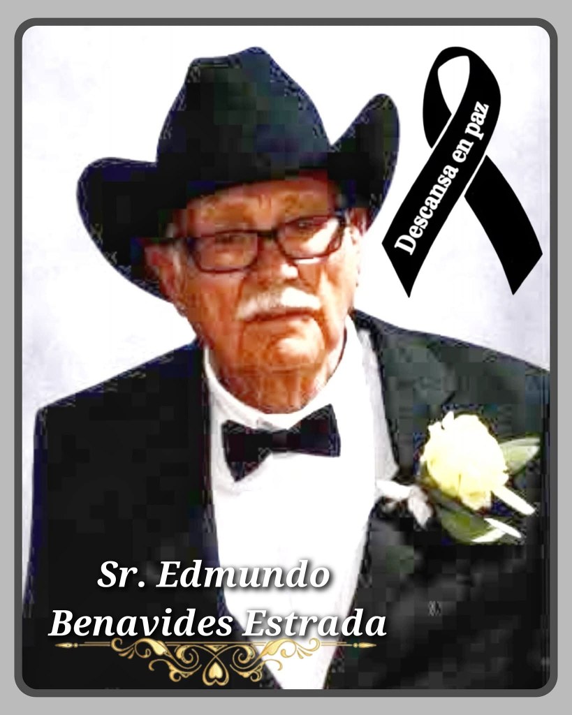 A familiares y amistades del Sr. Edmundo Benavides se les comunica su sensible fallecimiento a la edad de 93 años, es velado en la funeraria de San Carlos, los servicios funerarios serán este martes 5 de agosto a las 10 de la mañana en el panteón San Carlos.