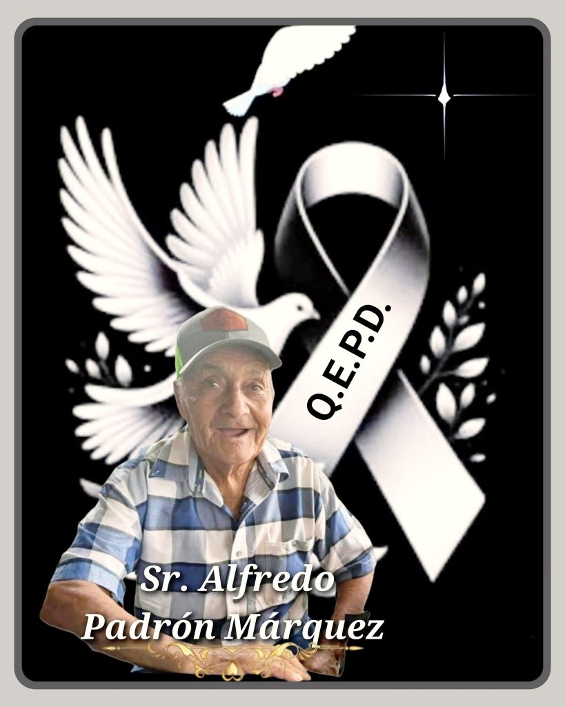 A familiares y amistades del Sr. Alfredo Padrón Márquez se les comunica su sensible fallecimiento el día de hoy en Ojinaga a la edad de 81 años, será velado en la comunidad de El Álamo Cañón de Barrera y ahí mismo serán los servicios funerarios.