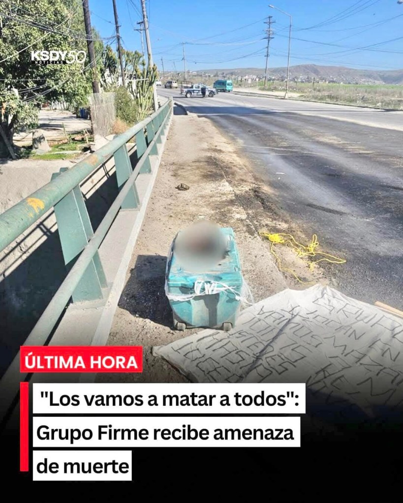 Tijuana,B.C. 25/02/2025.- Esta tarde Eduin Caz vocalista de Grupo Firme fue amenazado de muerte junto a su agrupación, en una manta de color blanco que fue colocada junto a una cabeza humana en el Puente de La Gloria en Tijuana.