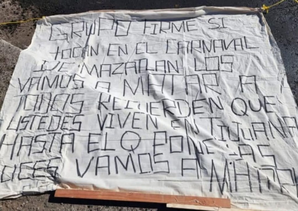 “Grupo Firme si tocan en el Carnaval de Mazatlán los vamos a matar a todos recuerden que ustedes viven en Tijuana hasta el que pone las luces los vamos a matar a todos” se leía en el mensaje escrito en dicha manta que alcanzaron a ver distintos automovilistas.