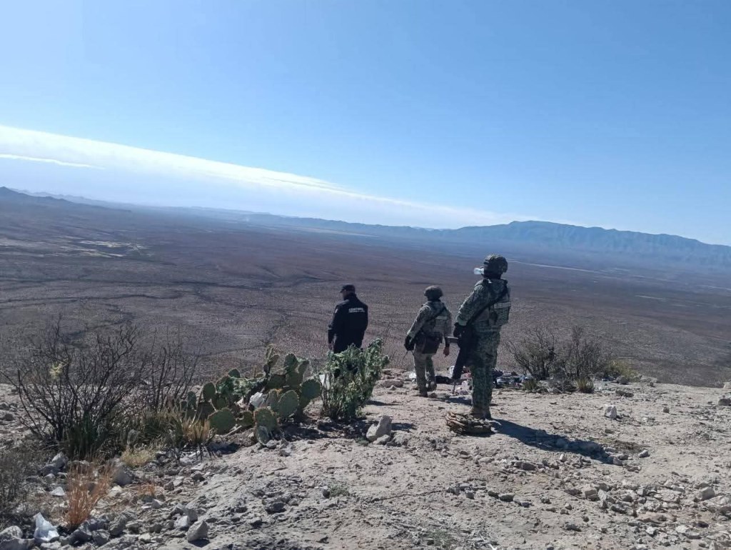 Elementos de la SSPE y el Ejército inhabilitaron un narcocampamento ubicado junto a la caseta de peaje rumbo a Ojinaga, tras ser detectado por observadores aéreos.