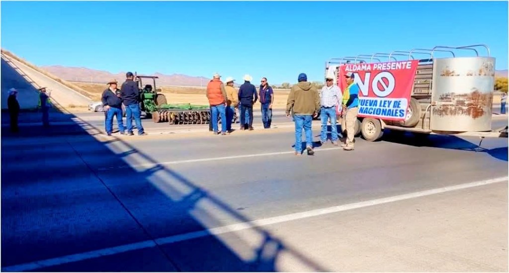 Agricultores de la región de Aldama bloquearon por completo la carretera en ambos carriles hacia Aldama y hacia Chihuahua, a la altura del Libramiento Oriente. La movilización se realizó en rechazo a la reforma a la ley del agua, según el reporte inicial.