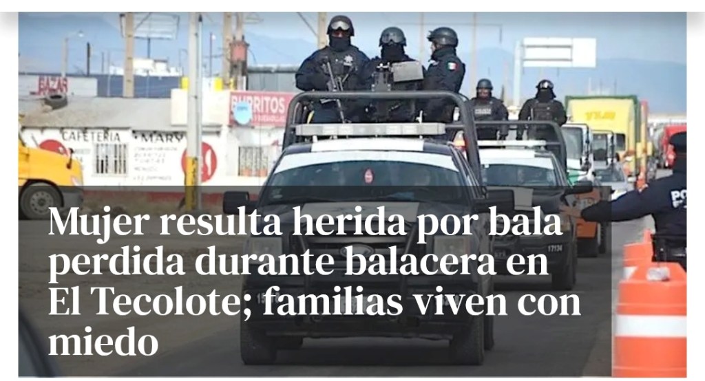 OJINAGA _Por medio de las redes sociales se estuvo difundiendo un audio en donde supuestamente una mujer originaria de Ojinaga resultó herida durante una balacera registrada en la comunidad de El Tecolote, luego de que una bala perdida entrara a su casa y le provocara un rozón en la cabeza y otra herida en el hombro.