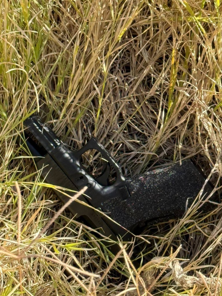 De manera posterior, se desplegó personal del grupo K9, lo que permitió que uno de los ejemplares caninos, de nombre Acre, localizara otra arma de fuego en un terreno baldío aledaño, zona por la que presuntamente huyeron los demás ocupantes del vehículo.