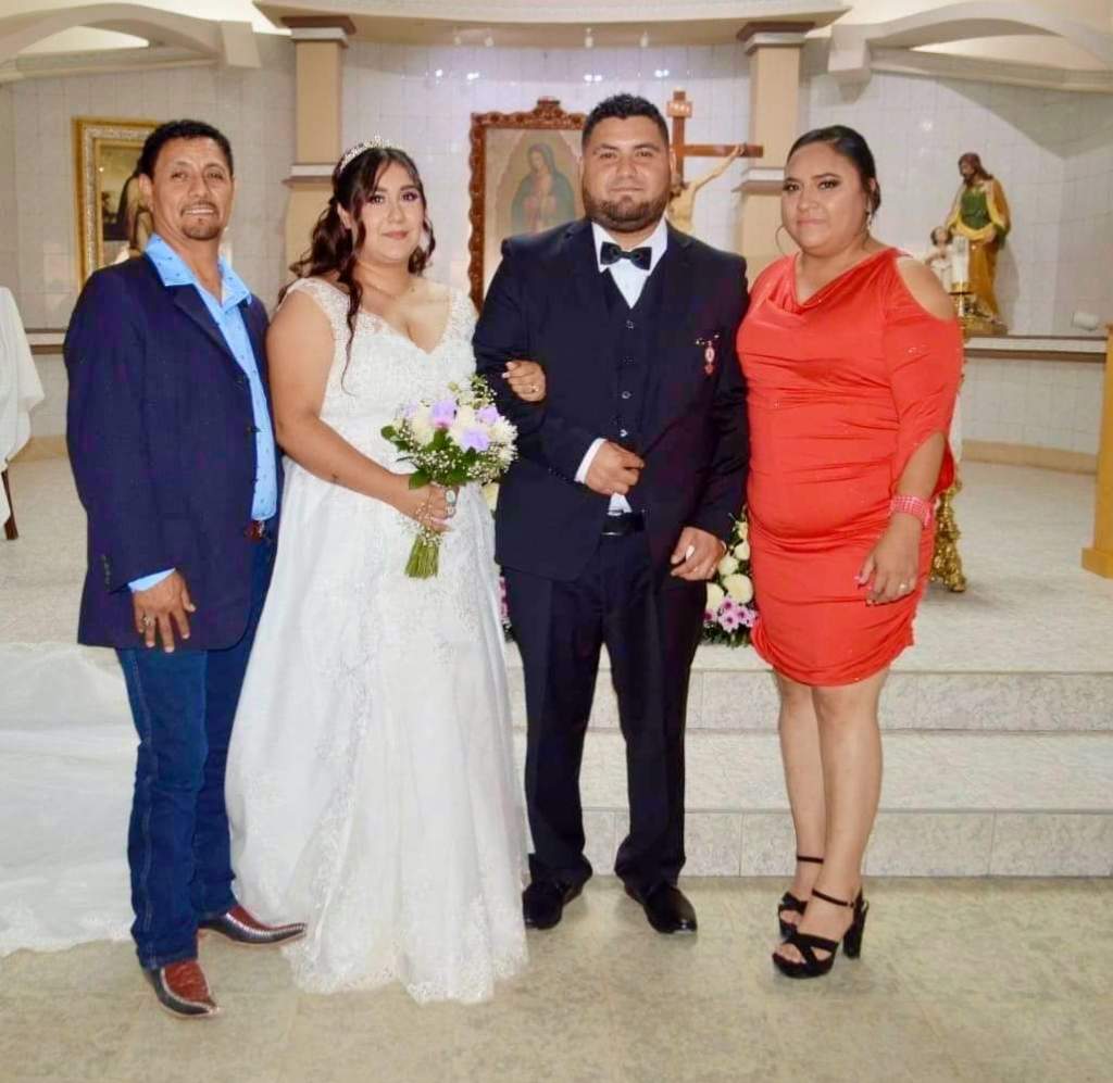 Muy felices y enamorados José Eduardo Ramírez y Carmen Lizbeth López, se presentaron en el santuario de Guadalupe para reafirmar su amor ante familiares y amigos y unir sus vidas en sagrado matrimonio el pasado sábado 12 de octubre. Los enamorados escucharon atentamente las palabras del sacerdote, quien los invitó a encontrar su camino retomando los valores que sus padres les enseñaron para un feliz matrimonio. Después de ser declarados marido y mujer, la pareja se recibió cálidas felicitaciones de sus familiares y amigos, además de aprovechar la oportunidad de posar para la foto del recuerdo de este bello día. Ya por la noche disfrutaron de una inolvidable recepción en el jardín de eventos explanada de la Santa Cruz, ubicada en la Estación del Ch-P donde los invitados felicitaron a los recién casados por esta nueva etapa que inician juntos, deseándoles lo mejor, principalmente amor, respeto y comprensión.