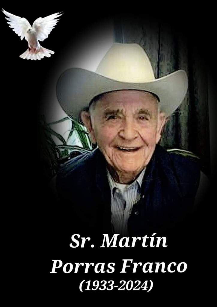 Le sobreviven su esposa Francisca Porras de Kermit, TX; hijos: Armando Porras and wife Sylvia of Presidio, TX., Raul Porras y esposa Emma de Monahans, TX., Arturo Porras y esposa Martina de Kermit, TX; hermano: Oscar Porras y esposa Lola de Acme, WA.; hetmanas: Manuela Rangel y esposo Martin of Burlington, WA., y Hortencia Porras de Burlington, WA.; nietos: Daisy Porras, Nataly Alvarado y esposo Cruz, Armandito Porras y espisa Maritza, Martin Porras, Rosalinda Segura y esposo Lionel, Araceli Segura y esposo Raul, Flor Porras, Jazmin Porras, Rose Isela Richert y esposo Christopher, Francis Shipley y esposo Chay, Stephanie Porras, Melanie Porras, Iris Mitchell, Eric Flores, Gilbert Yanez, Mitsy Creager y esposo Matt, Christofer Carrasco y esposa Cristal; bisnietos: Espiridion, Martin, Angelina Haven, Tiffany, Jesse, Julissa, Julianna, Mayla, Armando, Hailey, Nathaniel, Damien, Junior, Makael, Martin Christian, Raul, Julien, Axel, Romeo, Yaribel, Amaris, Noah, Amariah, Zailynn, Guilietta, Arturo, Matthew, Mark, Monika, Malachi, Lina Bella, Sebastian, Sophia, Kelton, Journee, Nevaeh Consuelo, Allison, Maverick, Madison Consuelo, Mia, Baylnn Consuelo, y Thomas; tataranietos: Serenity, Sophia, Audree, Elijah, Naileah, y Stella