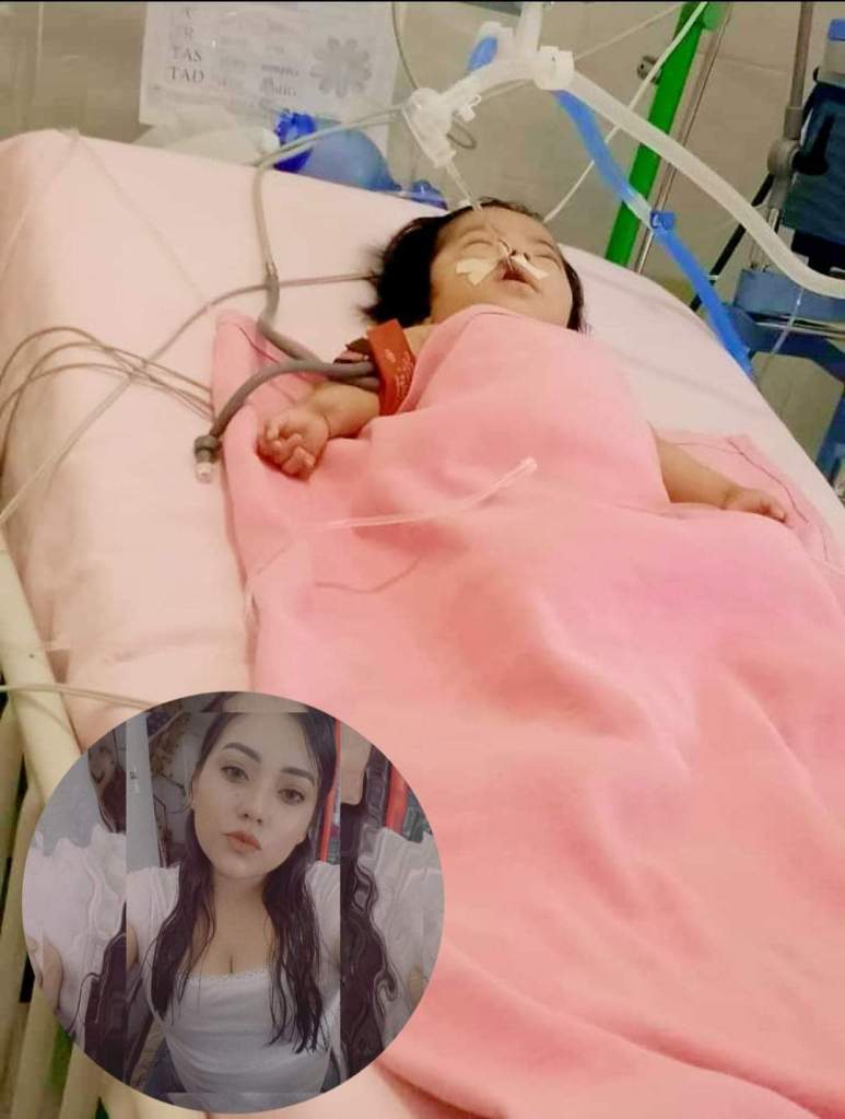 «Buenas noches les pido a todos por favor que oren por mi bebé que esta muy grave en chihuahua hace una hora se le perforó su pulmón y esta muy delicada les ruego que me ayuden a orar mucho por ella,ella esta aferrándose a la vida 😭 les agradecería 🙏 que me regalen sus oraciones para mi Jimena 😭 y que Dios se los multiplique»..